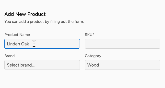 The brand creates a new product in the Floorify panel by entering the product name, SKU, brand and category information. With correct labeling, site synchronization is prepared.