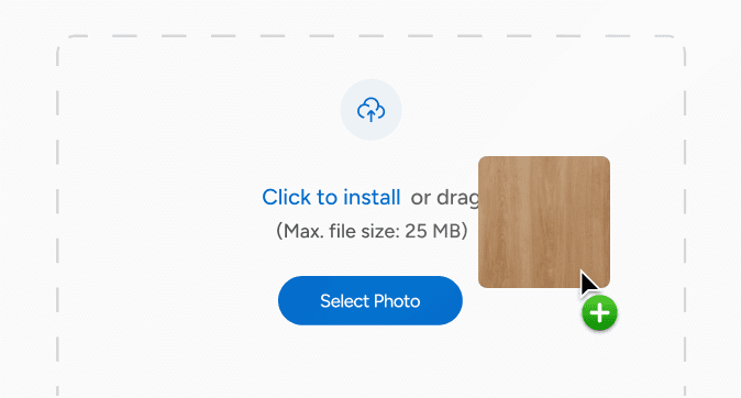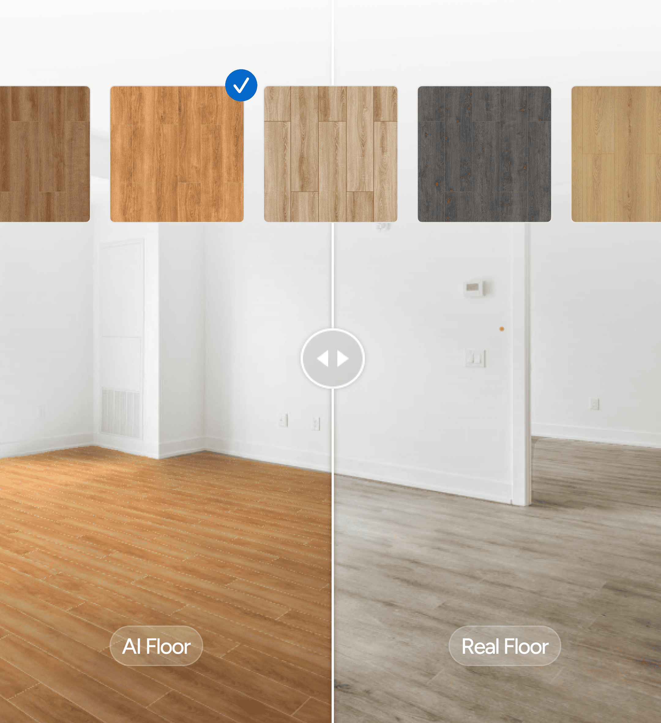 This removes the need for physical samples or manual photoshop work and turns every customer room photo into a realistic, comparable showroom.