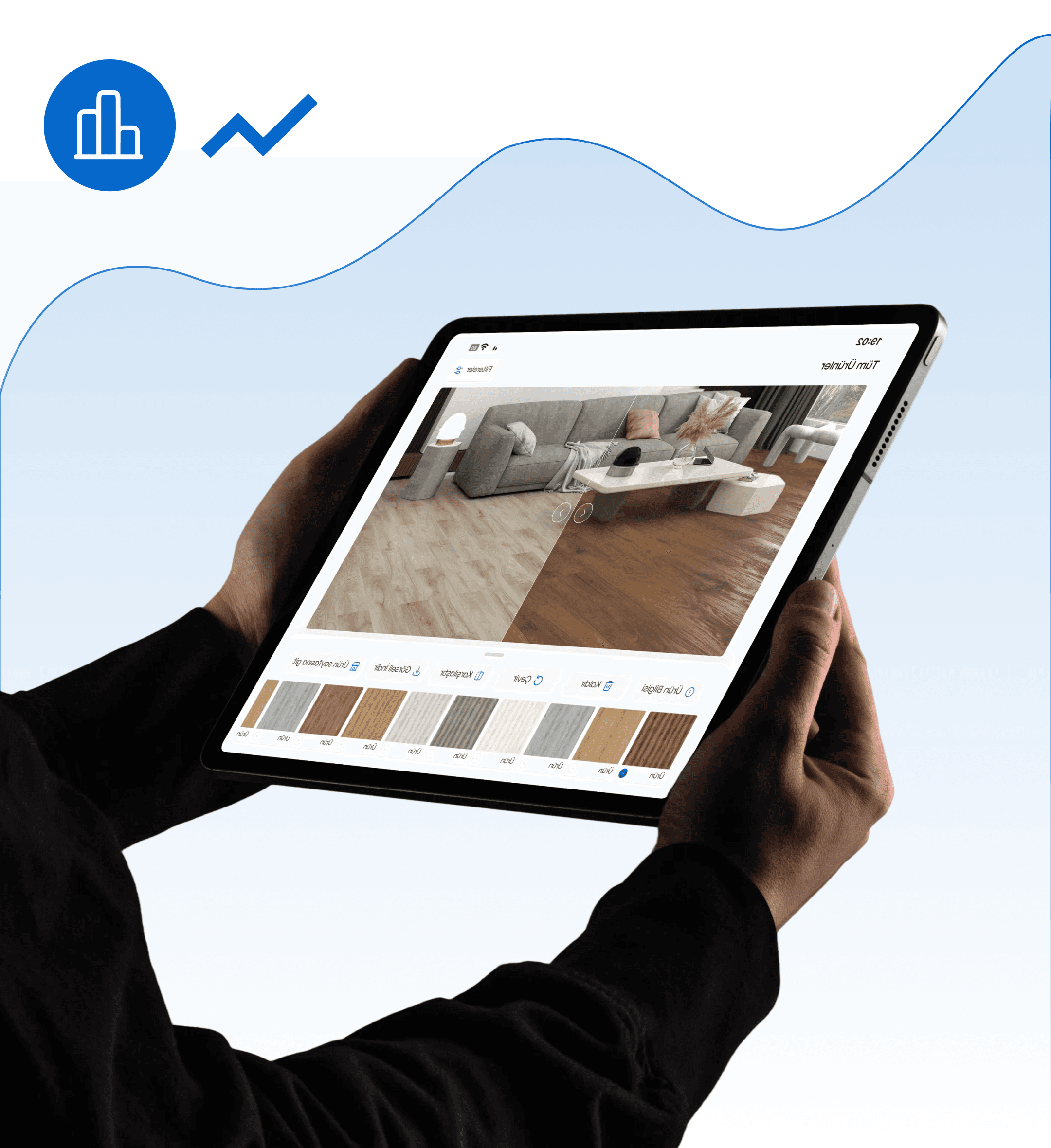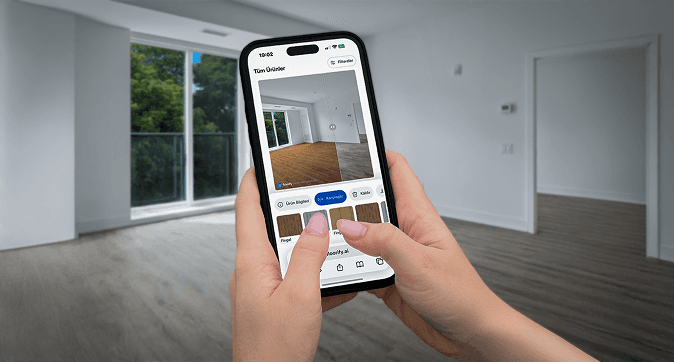 Customers see each flooring option directly in their own rooms, which speeds up selection and reduces indecision.